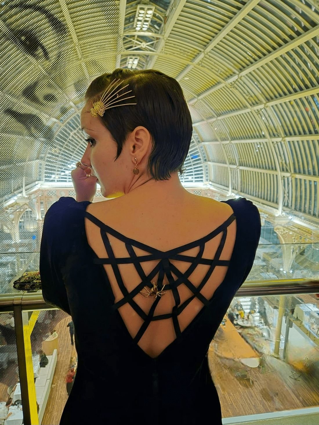 “"Simona has a knack for turning your vaguest ideas into beautiful creations. It started with a simple prompt: I wanted a low-back dress and I wanted a spiderweb. She then quietly put to work and made something that I could only describe as a portrait of me, seen by her.